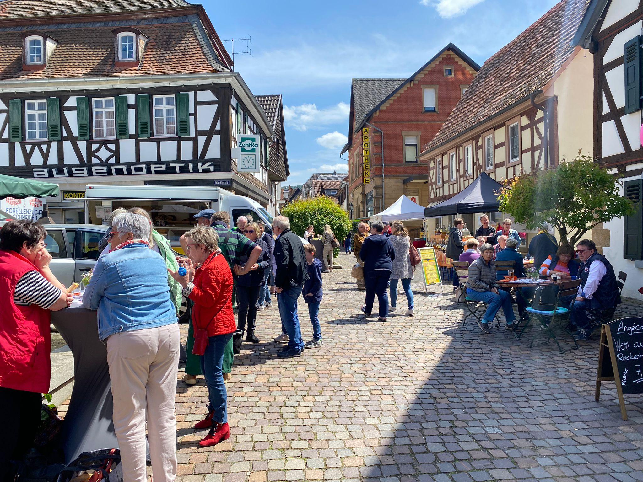 Eine frische Dampfnudel mit Vanillesoße, etwas Räucherlachs oder eine leckere Bratwurst und dazu ein Glas Wein – so lässt es sich beim Feinschmeckermarkt in Rockenhausen leben. An solch kulinarischen Köstlichkeiten können sich Genießerinnen und Genießer bei dem besonderen Markttag am Freitag in Rockenhausen wieder erfreuen. Etwa 20 aufgebaute Stände auf und um den Marktplatz animieren zum ungestörten Bummeln, Naschen, Testen und Einkaufen. Es locken allerlei Leckereien von süß über pikant mit Appetit anregendem Duft und herrlichem Anblick. Wein, Likör und Kaffee vervollständigen das Menü. Zudem bieten die etablierten Marktbeschicker wie gewohnt Blumen, Obst, Gemüse, Käse, Wurst, Schinken, Fisch und Honig sowie Brot und allerlei Backwaren an.