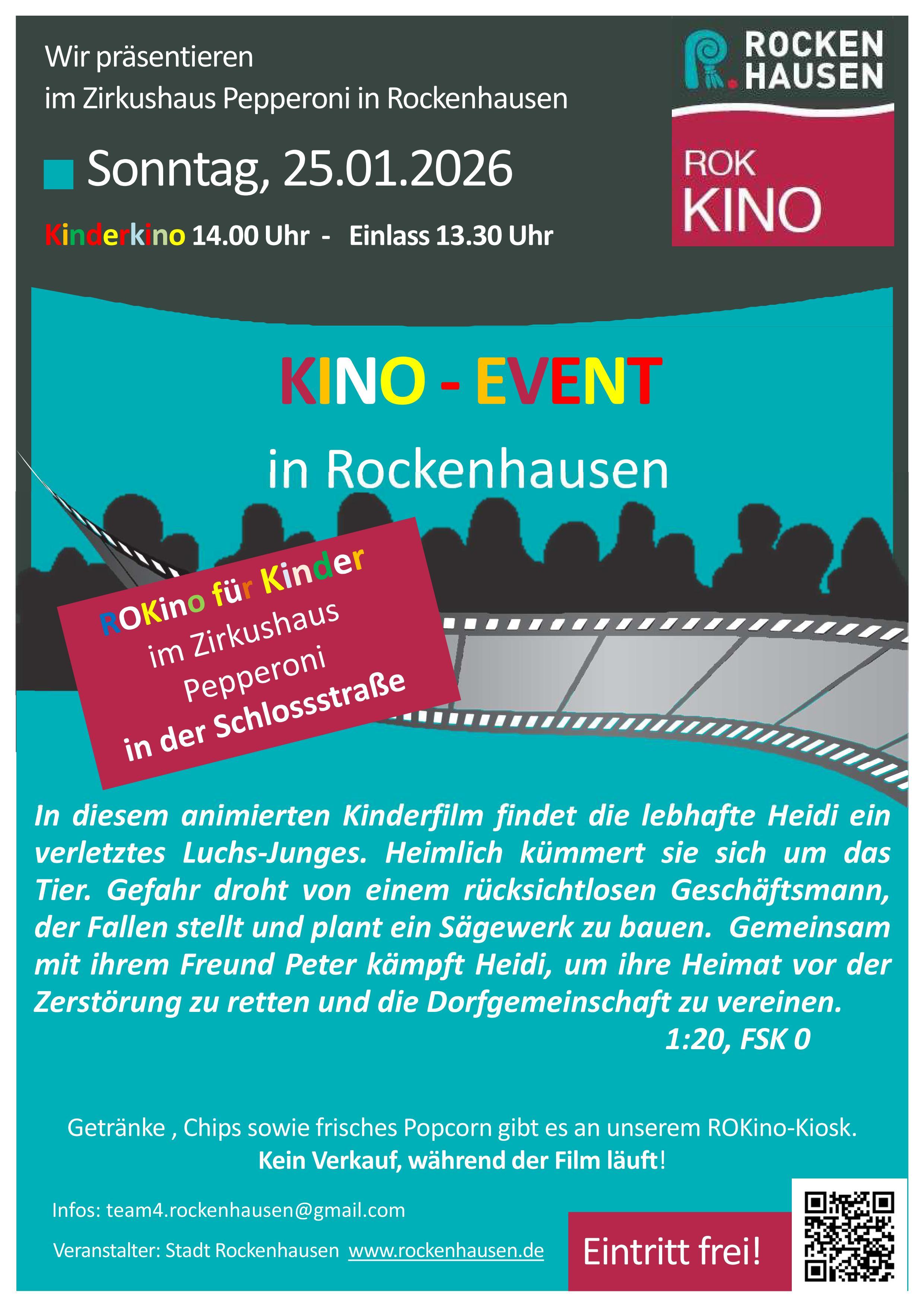 Team 4 der Standortentwicklung, das Zirkusteam sowie die Stadt Rockenhausen wünschen Groß und Klein ein angenehmes Kinoerlebnis mit frischem Popcorn und kühlen Getränken.